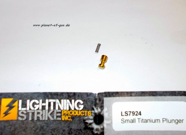 Extremely lightweight titanium safety plunger reduces mass for a lighter felt trigger pull. Titanium nitride coating reduces friction. One of those small detail that helps complete a Glock® trigger job. Includes Wolff safety plunger spring.